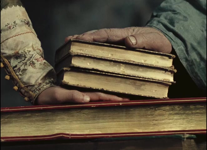 Books are pressed onto the child Sayat-Nova's hand. His hand will produce poetry.