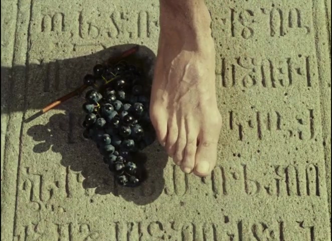 The opening image of The Color of Pomegranates is a foot pressing grapes. This is not merely visual poetry. It invokes a specific theological idea from St. Gregory of Narek (951–1003), the greatest Armenian mystical poet, who described the suffering of life as being "a grape in a winepress." For Gregory, Christ is the winepresser, and human suffering is the pressure that transforms raw material into something sacred.