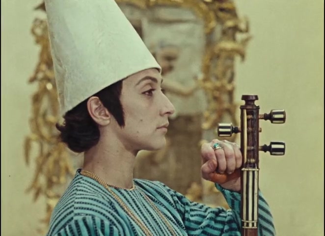 At the midpoint of the film, Sayat-Nova surrenders his kamancha to a bishop and takes monastic vows. It is the kamancha, not the tar, that he gives up—because the kamancha is his instrument, the symbol of his specific artistic identity. But this is not the resolution. The film continues through his monastic life, old age, and death.